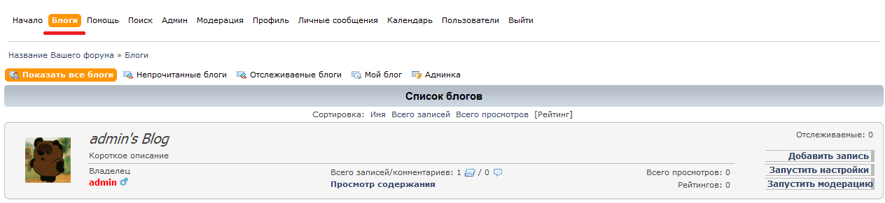 - Возможность создания личных блогов для каждого пользователя форума